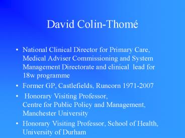 Policy and Management, Manchester University - Honorary Visiting Professor, School of Health,