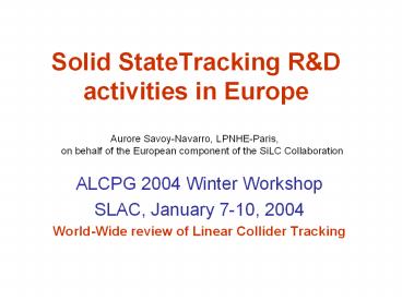 <Notice: Removed> Solid StateTracking R PowerPoint PPT Presentation