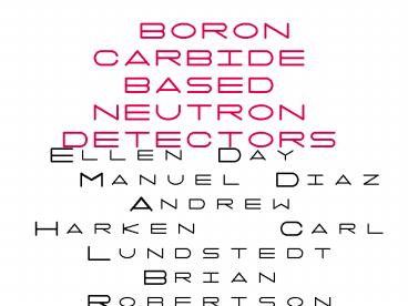 1 BORON CARBIDE BASED NEUTRON DETECTORS