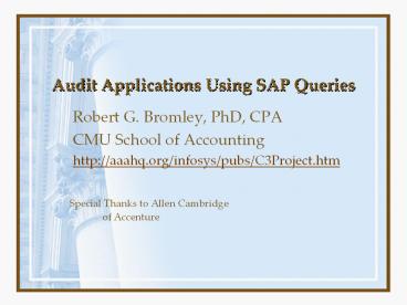 <Notice: Removed> Audit Applications Using SAP Queries PowerPoint PPT Presentation