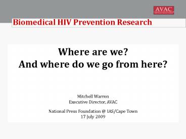 (AVAC, AMD, IAVI, UNAIDS) coming Monday, 20