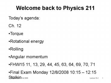 1Welcome back to Physics 211