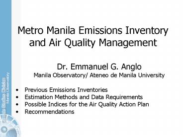 Title: Metro Manila Emissions Inventory and Air Quality Management