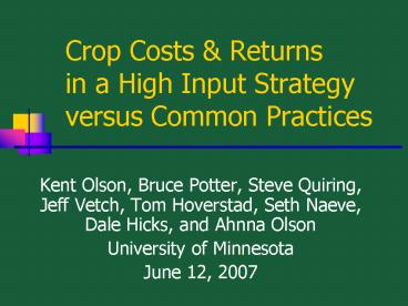 1Crop Costs Returnsin a High Input