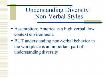 Understanding Diversity: NonVerbal Styles - PowerPoint PPT Presentation