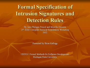 Title: Formal Specification of Intrusion Signatures and Detection Rules