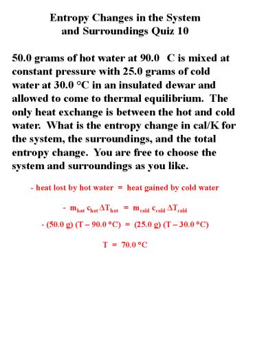 Entropy Changes in the System and Surroundings Quiz 10 PowerPoint PPT Presentation