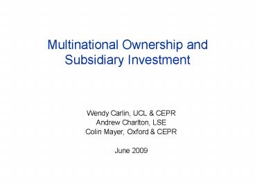 <Notice: Removed> Multinational Ownership and Subsidiary Investment PowerPoint PPT Presentation