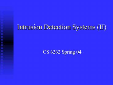 Title: Intrusion Detection Systems II