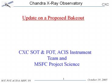 with any confidence. - The Bakeout is therefore postponed indefinitely.