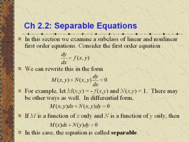 Ch 2.2: Separable Equations PowerPoint PPT Presentation