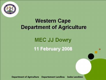 Title: Western Cape Department of Agriculture MEC JJ Dowry