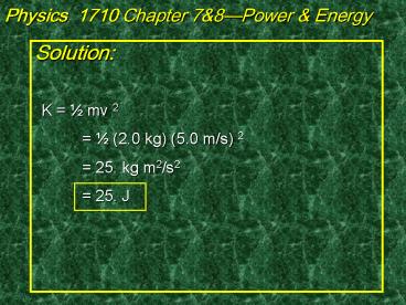 K ½ mv 2 ½ (2.0 kg) (5.0 m/s) 2 25. kg
