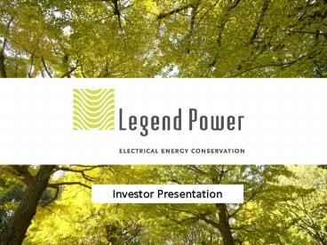 - Gerry Gill, Chairman CEO, Legend Power Systems