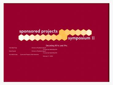 - Kevin McKoskey Sponsored Projects Administration