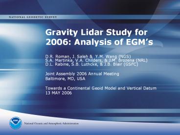 Gravity Lidar Study for 2006: Analysis of EGM PowerPoint PPT Presentation