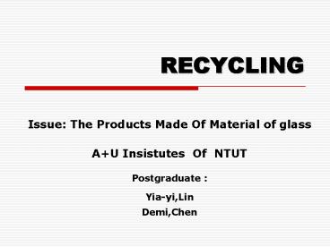 • OTHERWISE, PEOPLE REUSE THESE GIASSES RE-CREATION