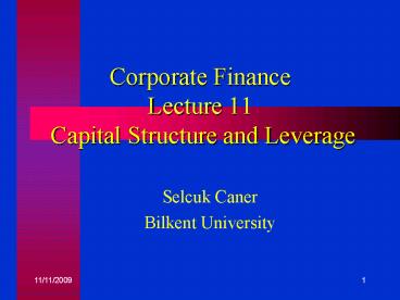 Title: Corporate Finance Lecture 11 Capital Structure and Leverage