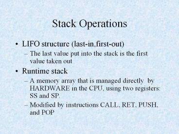 but is overwritten on the next push instruction. - The stack grows downward in memory.