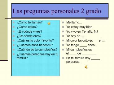 Las preguntas personales 2 grado PowerPoint PPT Presentation