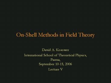 Title: On-Shell Methods in Field Theory