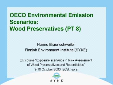 Title: OECD Environmental Emission Scenarios: Wood Preservatives PT 8