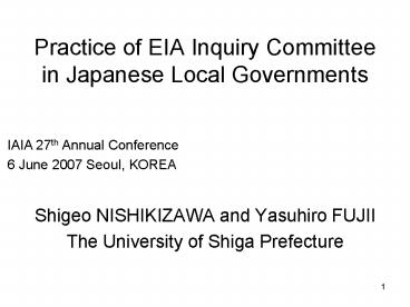 Title: Practice of EIA Inquiry Committee in Japanese Local Governments