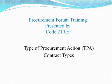 <Notice: Removed> Procurement Forum Training Presented by Code 210.H PowerPoint PPT Presentation