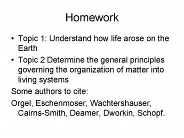 • Orgel, Eschenmoser, Wachtershauser, Cairns-Smith,