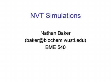 Problem the title of this lecture is NVT Simulations not NVE simulations