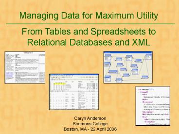 Managing Data for Maximum Utility PowerPoint PPT Presentation