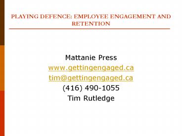 Title: PLAYING DEFENCE: EMPLOYEE ENGAGEMENT AND RETENTION