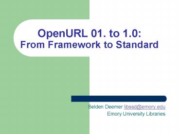• Demonstrate OpenURL 0.1 to OpenURL 1.0 upgrade