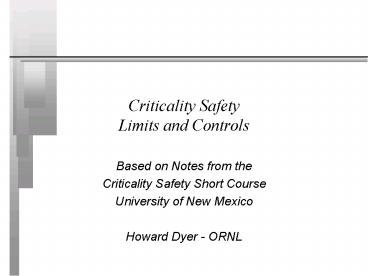 keff calculations, etc.) identifies - what to control (the parameters) and
