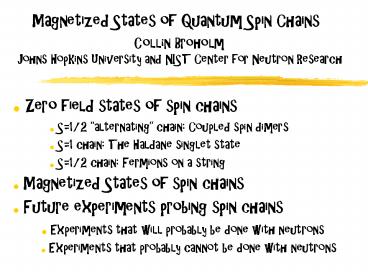 Collin Broholm Johns Hopkins University and NIST