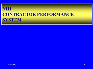 Title: NIH CONTRACTOR PERFORMANCE SYSTEM