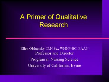 1A Primer of Qualitative Research