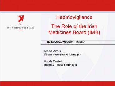 1Haemovigilance The Role of the Irish Medicines