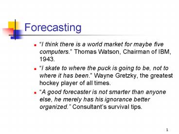 computers. Thomas Watson, Chairman of IBM, 1943. - I skate to where the puck is going to be, not to