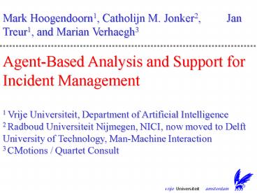 Agent-Based Analysis and Support for Incident