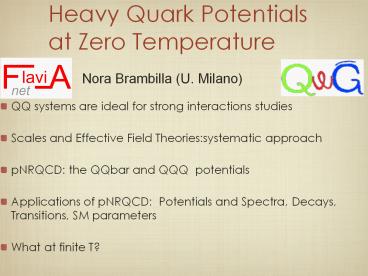 1Heavy Quark Potentials at Zero Temperature
