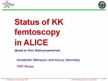 Title: K'Mikhaylov, A'Stavinsky ITEP STAR Meeting, Dubna 11June2008 1