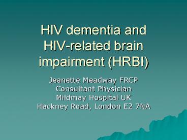 HIV dementia and HIVrelated brain impairment HRBI PowerPoint PPT Presentation