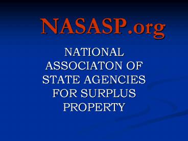 • NATIONAL ASSOCIATON OF STATE AGENCIES FOR SURPLUS