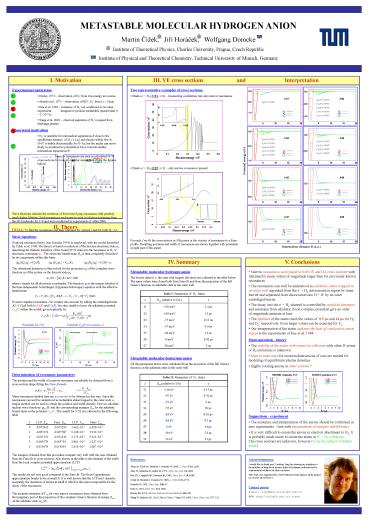 1METASTABLE MOLECULAR HYDROGEN ANION Martin Cížek,