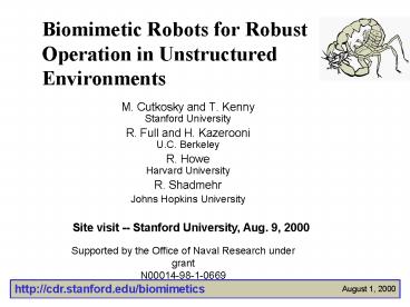 Title: Biomimetic Robots for Robust Operation in Unstructured Environments
