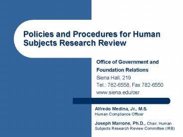 being conducted through Siena College. - Explanation of the purpose of the research and