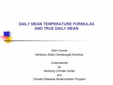 DAILY MEAN TEMPERATURE FORMULAS AND TRUE DAILY MEAN PowerPoint PPT Presentation