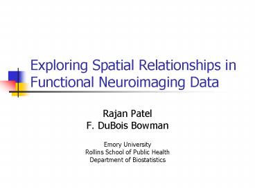 Exploring Spatial Relationships in Functional Neuroimaging Data PowerPoint PPT Presentation