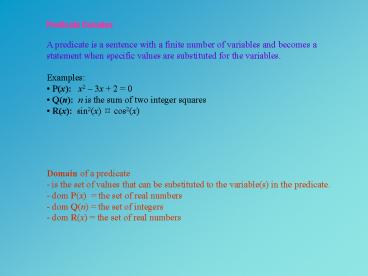 the variable(s) in the predicate. - dom P(x) the set of real numbers